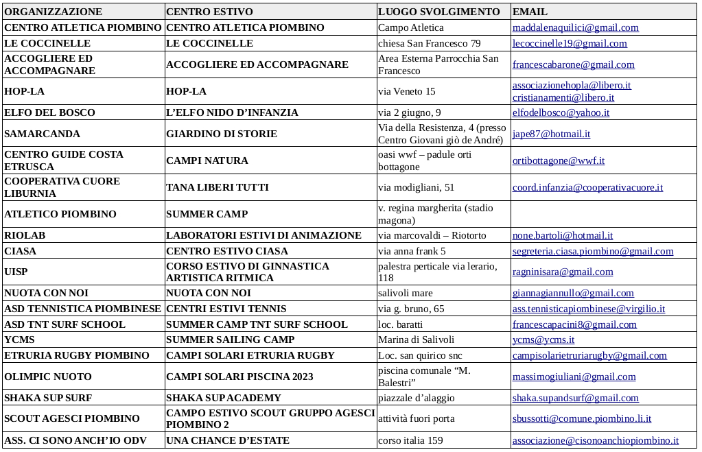 Per info e prenotazioni: sbussotti@comune.piombino.li.it