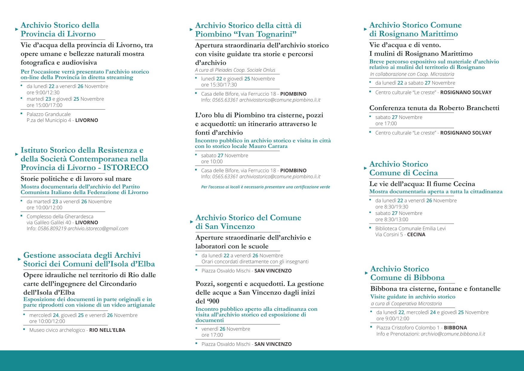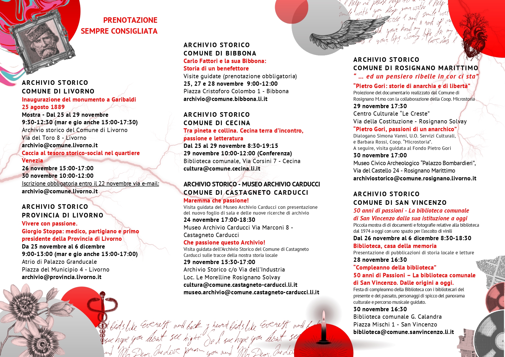 L'Archivio Storico Ivan Tognarini della Città di Piombino aderisce dal 2016 all'iniziativa con programmi ed eventi diversi.
